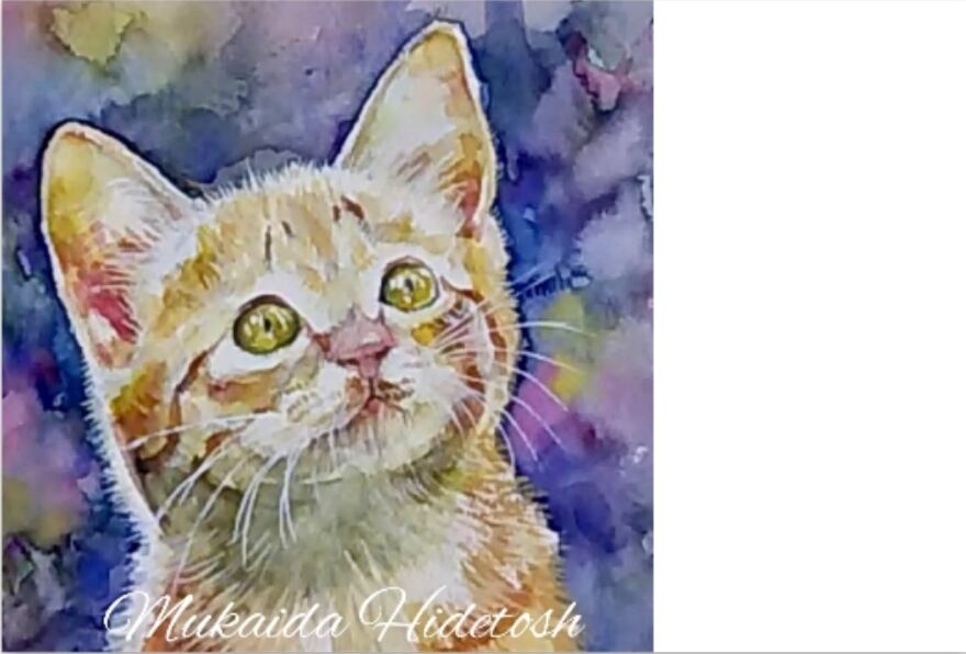 水彩画の猫ちゃんの絵が入ったポストカードです。